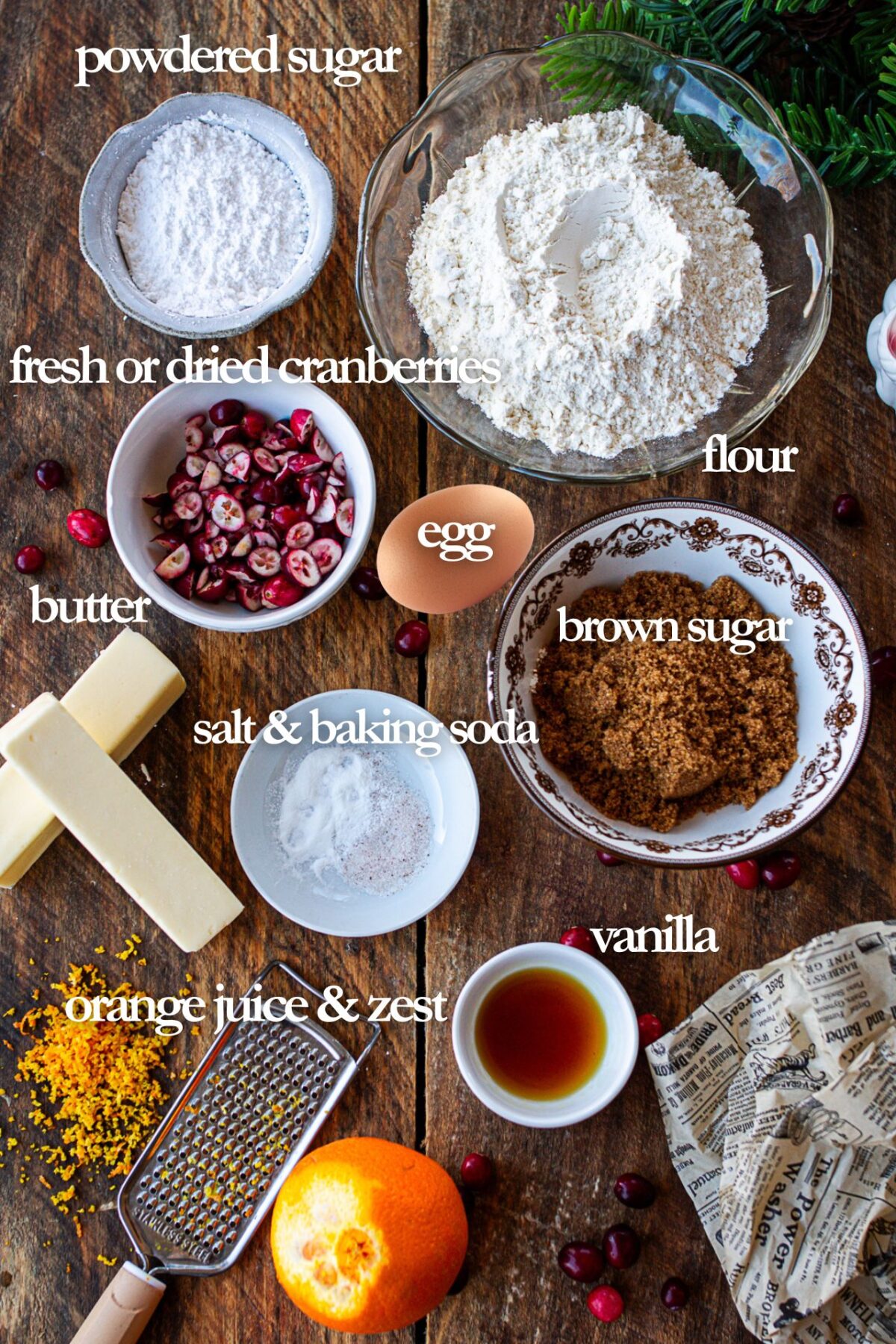 Key Ingredients: Butter, brown sugar, powdered sugar, cranberries, orange zest