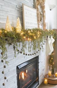 After we placed a new shelf above our TV on the wall we added shiplap to, I knew it needed to be filled with Christmas goodness straight away!