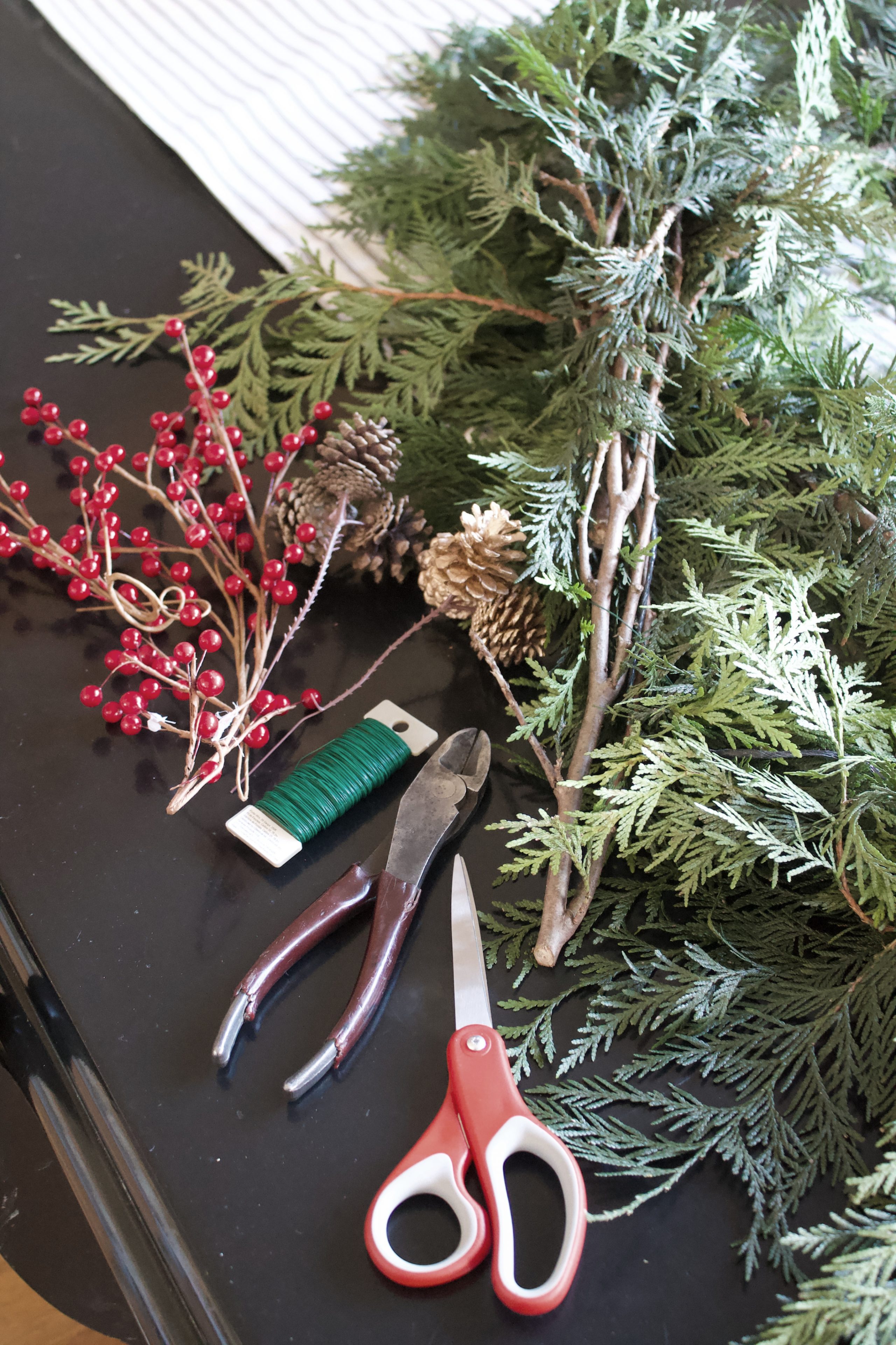 ? Main Supplies: Fresh or faux garland, floral wire, scissors, nippers, twinkle lights, optional decor picks (like holly or pinecones)