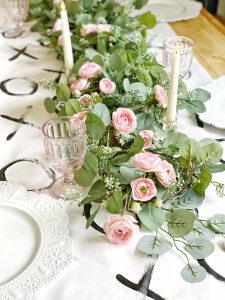 I also sliced the red hearts just an inch or so in the top V and folded them over to give a more 3-D look. Then to adhere to the wall, I simply used command strips to hold them into position! And I can't forget this simple valentines tablescape.