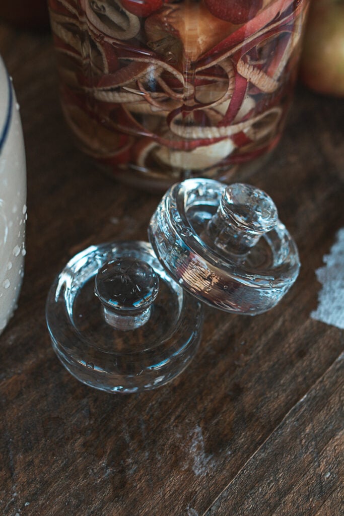 Cover the jar with a coffee filter, cheese cloth, or paper towel secured by a ring or rubber band. This allows air to flow while keeping out dust and fruit flies. Some people prefer to use pickle pipes or glass fermentation weights to keep the scraps submerged below the liquid-this helps prevent mold.