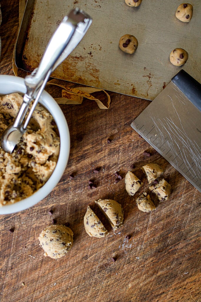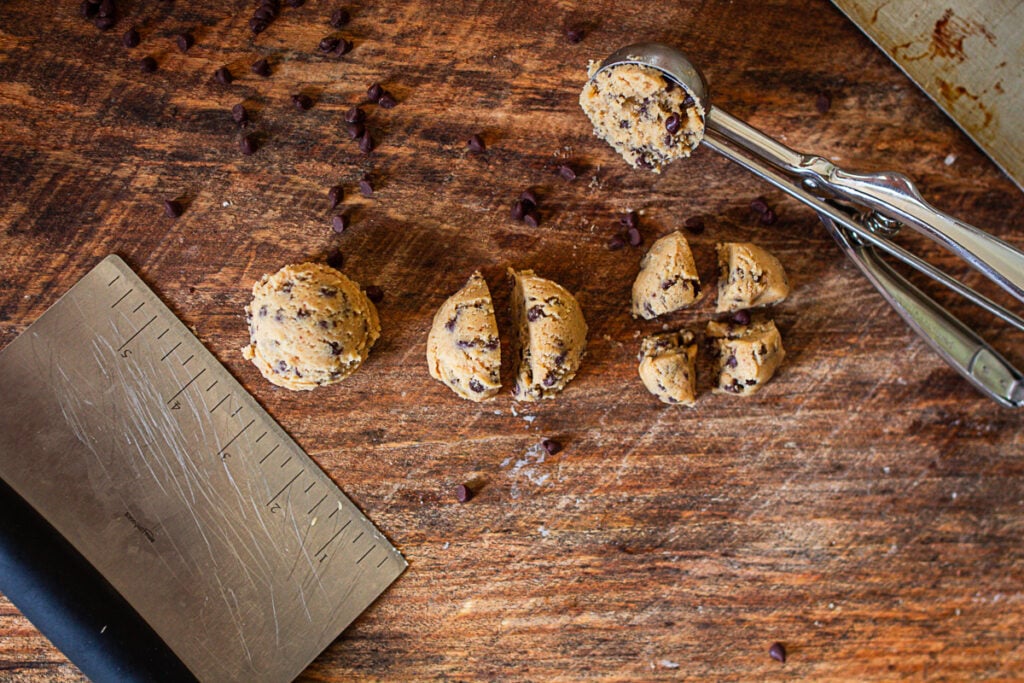 - Easy to bake: Using a cookie scoop and bench scraper makes it simple to portion the dough evenly. Roll each piece into tiny cookie dough balls, and they’ll bake up soft, golden, and perfectly uniform in just 5–7 minutes.