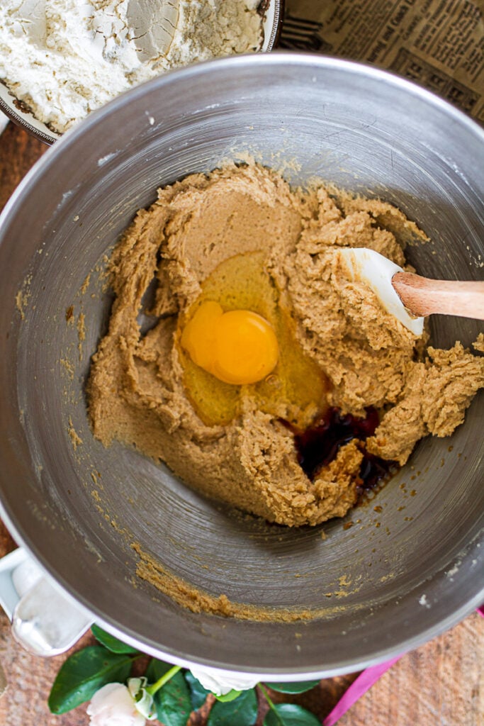 - Add wet ingredients: Mix in the egg and pure vanilla extract until combined, scraping down the sides of the bowl.