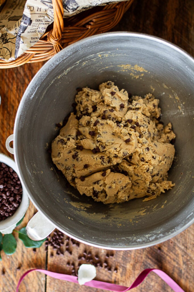 Mini chips give the best chocolate-to-cookie ratio. But, you can mix in regular chips for variety or if it’s all you have.