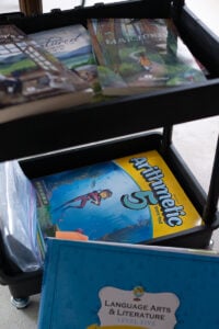 A school cart is kind of like home-base. Even though we have a school room, we'll also be schooling all around the house. This is the central area we'll come to grab books, put them away, and know where to find things. Although I'll share some great options of carts to purchase later in this post, I wanted to also encourage you to search around in your local thrift stores, or online marketplaces. You might be able to find a cart worth converting!