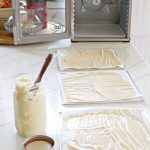 Spread on Tray: Spread a very thin layer of starter across a parchment paper. The thinner, the better, to reduce drying time and ensure that the starter dries evenly.