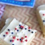Trim off sides before frositing. Frost, cut into 2" x 2" pieces. Enjoy!